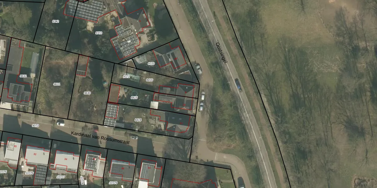 Het perceel waarop Oostsingel 8 staat heeft een oppervlakte van 450 m². Dit is een groot perceel. De perceeloppervlakte wordt geregistreerd door het Kadaster. Gedetailleerde informatie over de maten van dit perceel kunt u vinden in het rapport Kadastrale kaart met maatvoering van Oostsingel 8.
