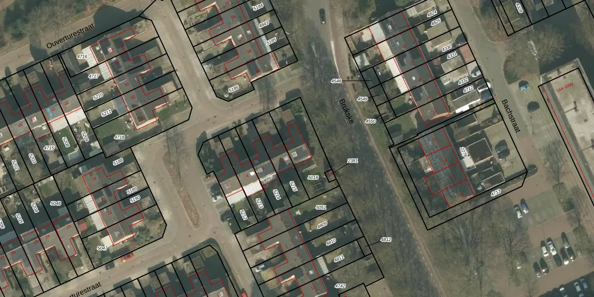 Gebruik de zoekbalk of klik op een perceel voor informatie over de adressen binnen dit perceel.