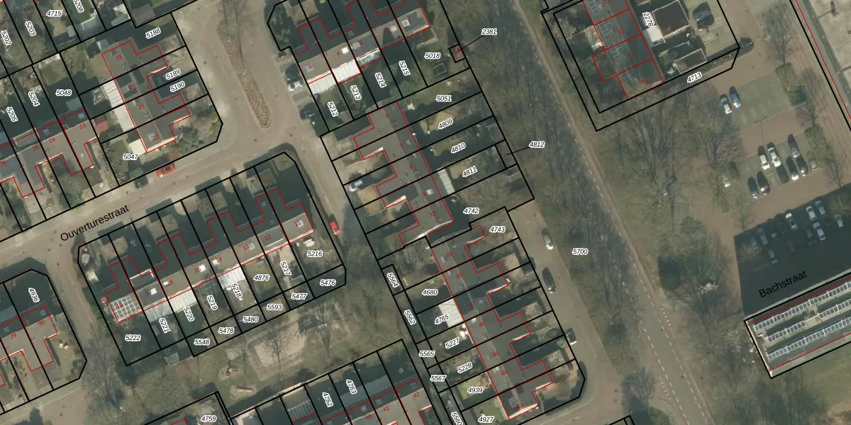 Gebruik de zoekbalk of klik op een perceel voor informatie over de adressen binnen dit perceel.