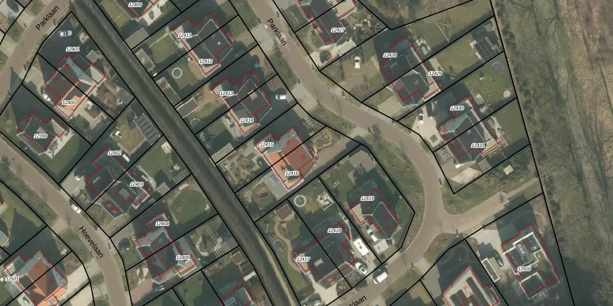 Parklaan 12 is gelegen op kadastraal perceel VRY00C12416. Deze kadastrale aanduiding is uniek en wordt gebruikt door het Kadaster om eigendomsrechten en andere zakelijke rechten vast te leggen. Het perceel maakt onderdeel uit van de kadastrale gemeente Venray.