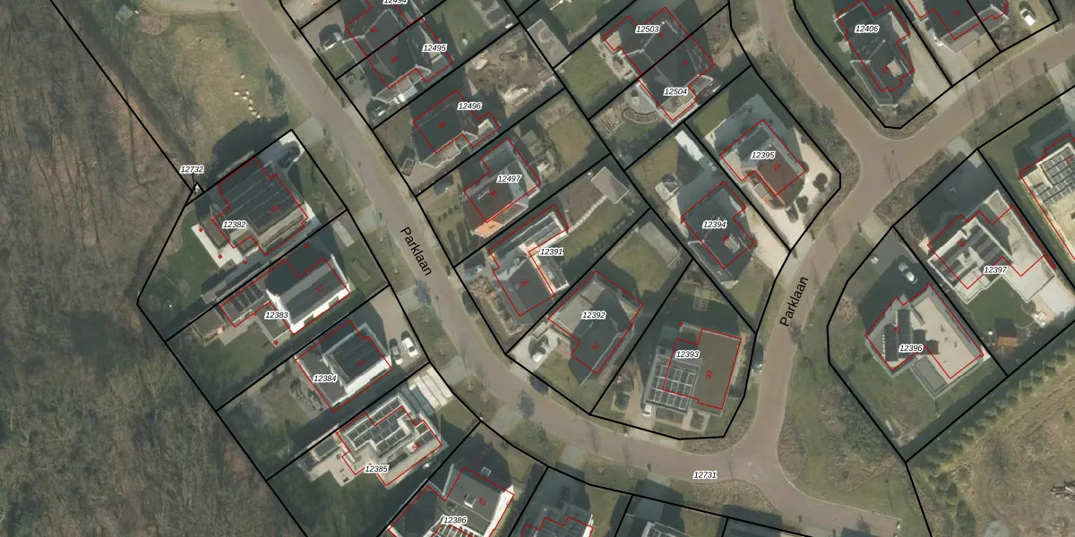 Gebruik de zoekbalk of klik op een perceel voor informatie over de adressen binnen dit perceel.