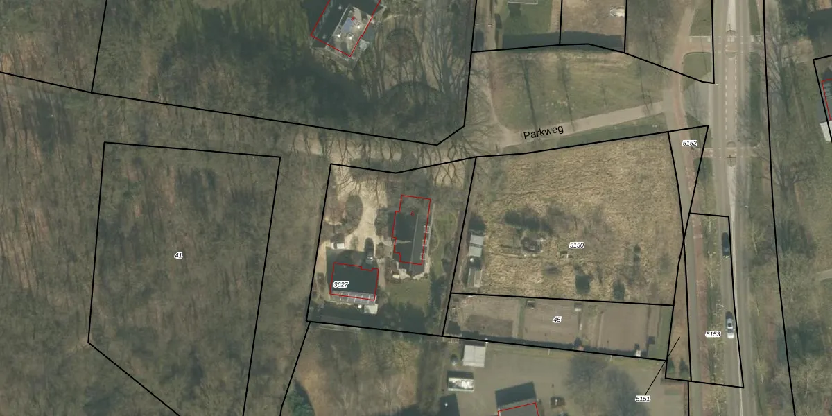 Het perceel waarop Parkweg 6 staat heeft een oppervlakte van 1320 m². Dit is een zeer groot perceel. De perceeloppervlakte wordt geregistreerd door het Kadaster. Gedetailleerde informatie over de maten van dit perceel kunt u vinden in het rapport Kadastrale kaart met maatvoering van Parkweg 6.
