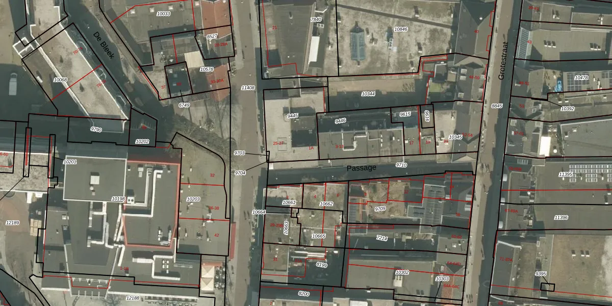 Passage 1-A is gelegen op kadastraal perceel VRY00C9445. Deze kadastrale aanduiding is uniek en wordt gebruikt door het Kadaster om eigendomsrechten en andere zakelijke rechten vast te leggen. Het perceel maakt onderdeel uit van de kadastrale gemeente Venray.