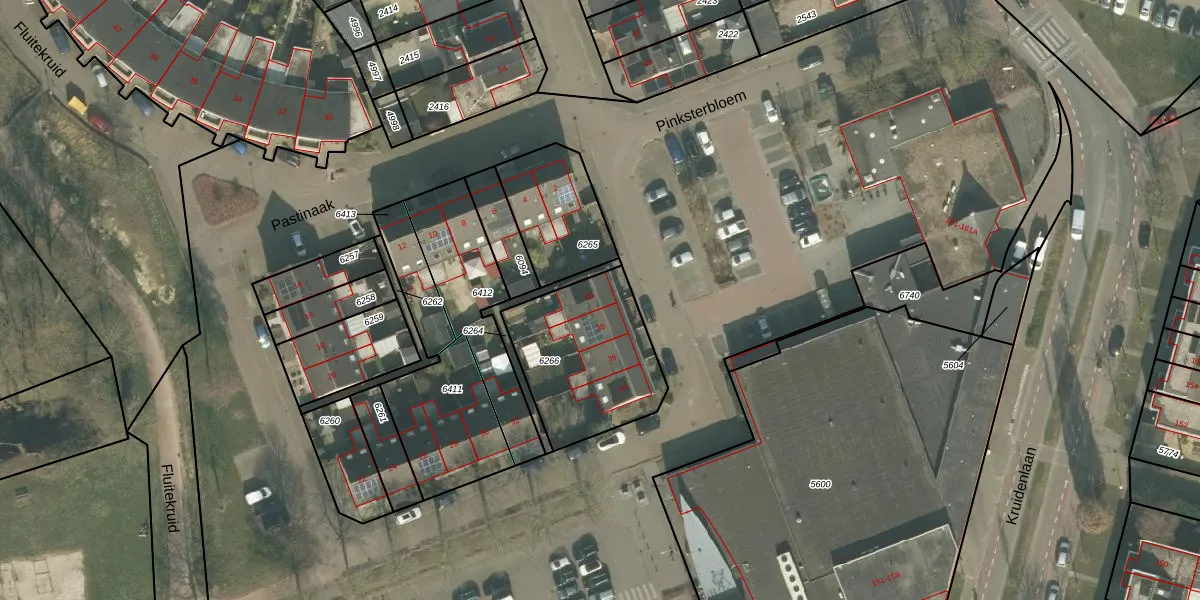 Het perceel waarop Pastinaak 40 staat heeft een oppervlakte van 535 m². Dit is een groot perceel. De perceeloppervlakte wordt geregistreerd door het Kadaster. Gedetailleerde informatie over de maten van dit perceel kunt u vinden in het rapport Kadastrale kaart met maatvoering van Pastinaak 40.