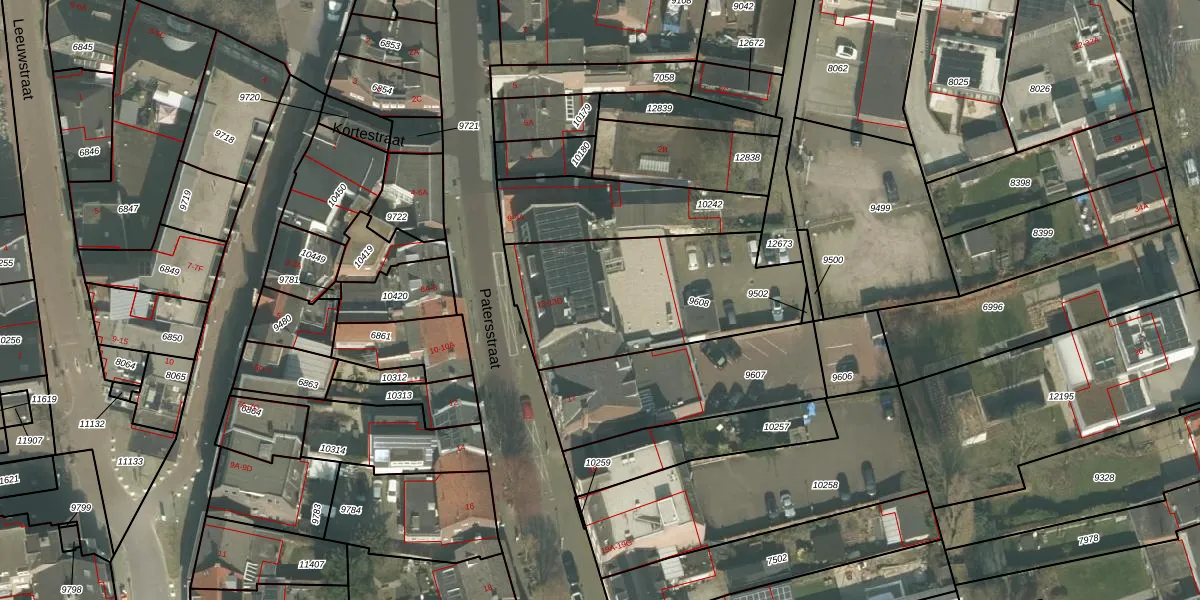 Het perceel waarop Patersstraat 13-D staat heeft een oppervlakte van 845 m². Dit is een groot perceel. De perceeloppervlakte wordt geregistreerd door het Kadaster. Gedetailleerde informatie over de maten van dit perceel kunt u vinden in het rapport Kadastrale kaart met maatvoering van Patersstraat 13-D.