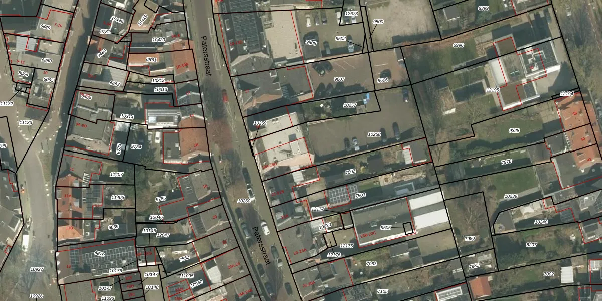 Het perceel waarop Patersstraat 19-G staat heeft een oppervlakte van 844 m². Dit is een groot perceel. De perceeloppervlakte wordt geregistreerd door het Kadaster. Gedetailleerde informatie over de maten van dit perceel kunt u vinden in het rapport Kadastrale kaart met maatvoering van Patersstraat 19-G.