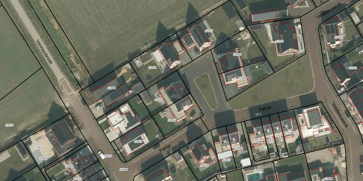 Patrijs 12 is gelegen op kadastraal perceel VRY00C12620. Deze kadastrale aanduiding is uniek en wordt gebruikt door het Kadaster om eigendomsrechten en andere zakelijke rechten vast te leggen. Het perceel maakt onderdeel uit van de kadastrale gemeente Venray.