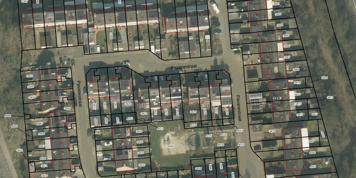 Pavanestraat 37 is gelegen op kadastraal perceel VRY00T3424. Deze kadastrale aanduiding is uniek en wordt gebruikt door het Kadaster om eigendomsrechten en andere zakelijke rechten vast te leggen. Het perceel maakt onderdeel uit van de kadastrale gemeente Venray.