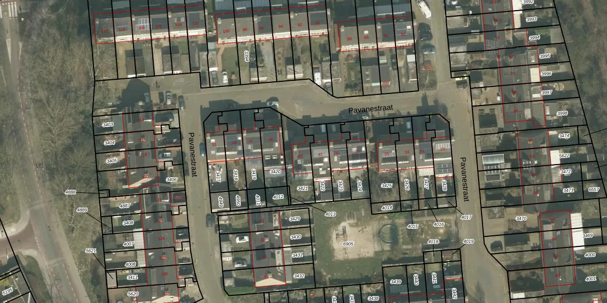 Pavanestraat 43 is gelegen op kadastraal perceel VRY00T3421. Deze kadastrale aanduiding is uniek en wordt gebruikt door het Kadaster om eigendomsrechten en andere zakelijke rechten vast te leggen. Het perceel maakt onderdeel uit van de kadastrale gemeente Venray.
