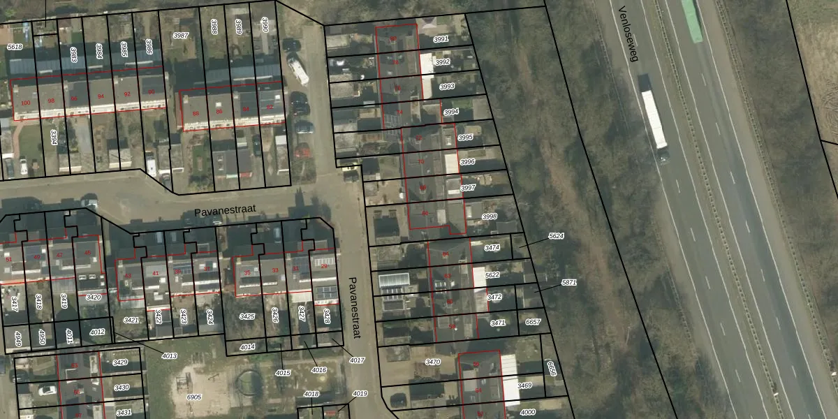 Gebruik de zoekbalk of klik op een perceel voor informatie over de adressen binnen dit perceel.