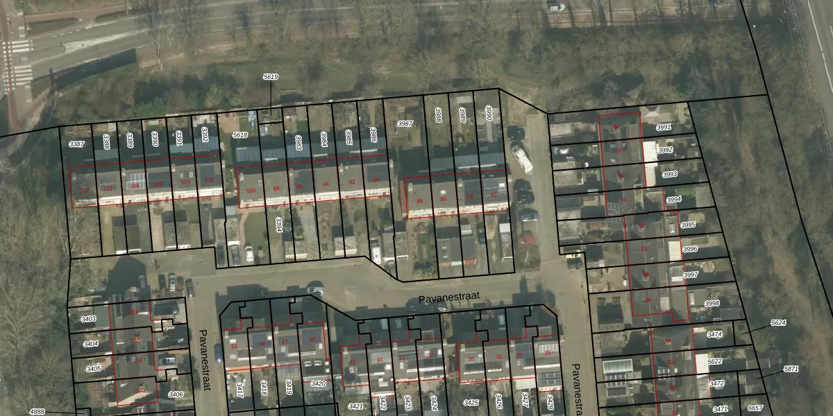 Het perceel waarop Pavanestraat 88 staat heeft een oppervlakte van 435 m². Dit is een groot perceel. De perceeloppervlakte wordt geregistreerd door het Kadaster. Gedetailleerde informatie over de maten van dit perceel kunt u vinden in het rapport Kadastrale kaart met maatvoering van Pavanestraat 88.