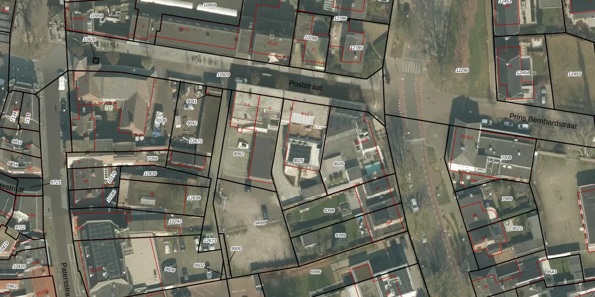 Poststraat 8 is gelegen op kadastraal perceel VRY00C8025. Deze kadastrale aanduiding is uniek en wordt gebruikt door het Kadaster om eigendomsrechten en andere zakelijke rechten vast te leggen. Het perceel maakt onderdeel uit van de kadastrale gemeente Venray.