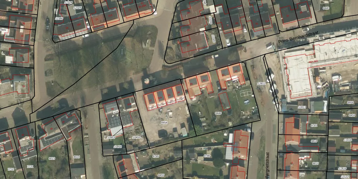 Prins Bernhardstraat 36 is gelegen op kadastraal perceel VRY00C8454. Deze kadastrale aanduiding is uniek en wordt gebruikt door het Kadaster om eigendomsrechten en andere zakelijke rechten vast te leggen. Het perceel maakt onderdeel uit van de kadastrale gemeente Venray.
