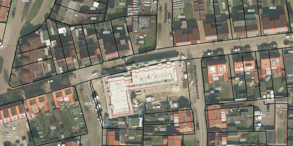 Het perceel waarop Prins Bernhardstraat 48-B staat heeft een oppervlakte van 2230 m². Dit is een zeer groot perceel. De perceeloppervlakte wordt geregistreerd door het Kadaster. Gedetailleerde informatie over de maten van dit perceel kunt u vinden in het rapport Kadastrale kaart met maatvoering van Prins Bernhardstraat 48-B.