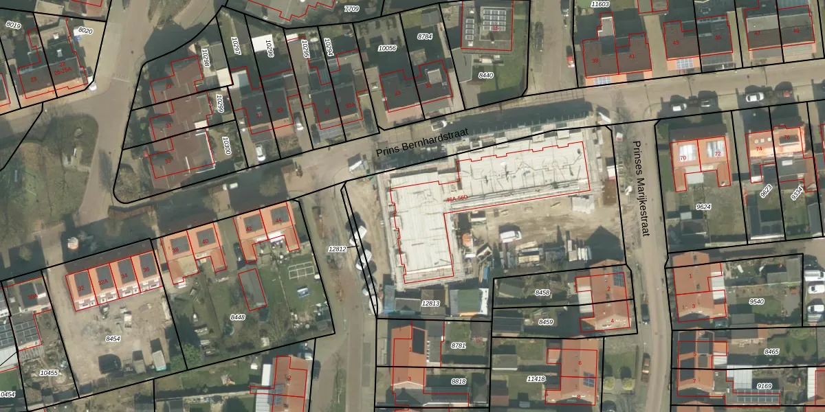 Het perceel waarop Prins Bernhardstraat 50-A staat heeft een oppervlakte van 2230 m². Dit is een zeer groot perceel. De perceeloppervlakte wordt geregistreerd door het Kadaster. Gedetailleerde informatie over de maten van dit perceel kunt u vinden in het rapport Kadastrale kaart met maatvoering van Prins Bernhardstraat 50-A.