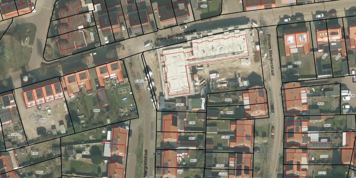Het perceel waarop Prins Bernhardstraat 50-C staat heeft een oppervlakte van 2230 m². Dit is een zeer groot perceel. De perceeloppervlakte wordt geregistreerd door het Kadaster. Gedetailleerde informatie over de maten van dit perceel kunt u vinden in het rapport Kadastrale kaart met maatvoering van Prins Bernhardstraat 50-C.