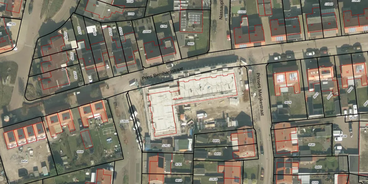 Het perceel waarop Prins Bernhardstraat 52-A staat heeft een oppervlakte van 2230 m². Dit is een zeer groot perceel. De perceeloppervlakte wordt geregistreerd door het Kadaster. Gedetailleerde informatie over de maten van dit perceel kunt u vinden in het rapport Kadastrale kaart met maatvoering van Prins Bernhardstraat 52-A.