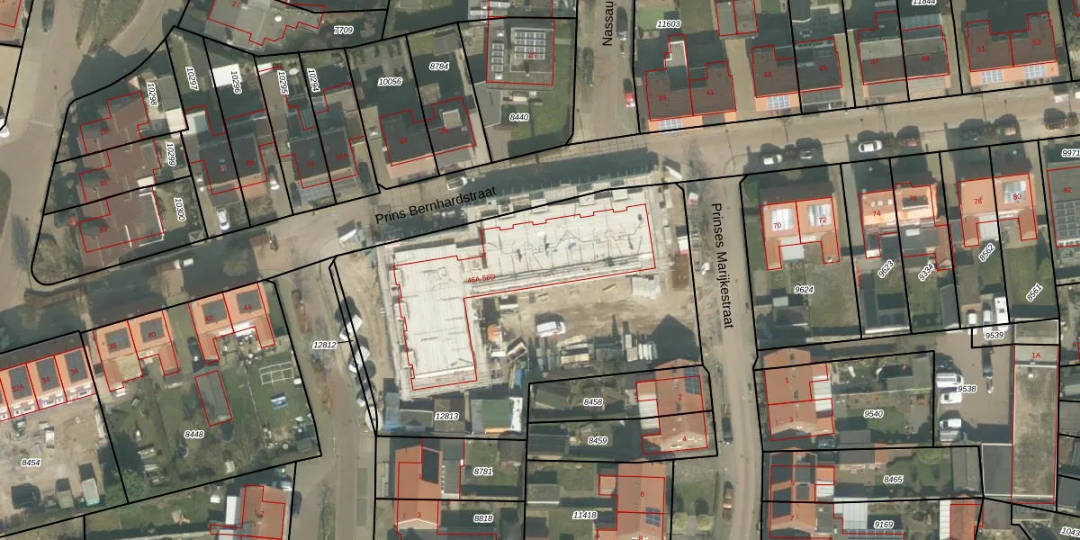 Het perceel waarop Prins Bernhardstraat 56-B staat heeft een oppervlakte van 2230 m². Dit is een zeer groot perceel. De perceeloppervlakte wordt geregistreerd door het Kadaster. Gedetailleerde informatie over de maten van dit perceel kunt u vinden in het rapport Kadastrale kaart met maatvoering van Prins Bernhardstraat 56-B.