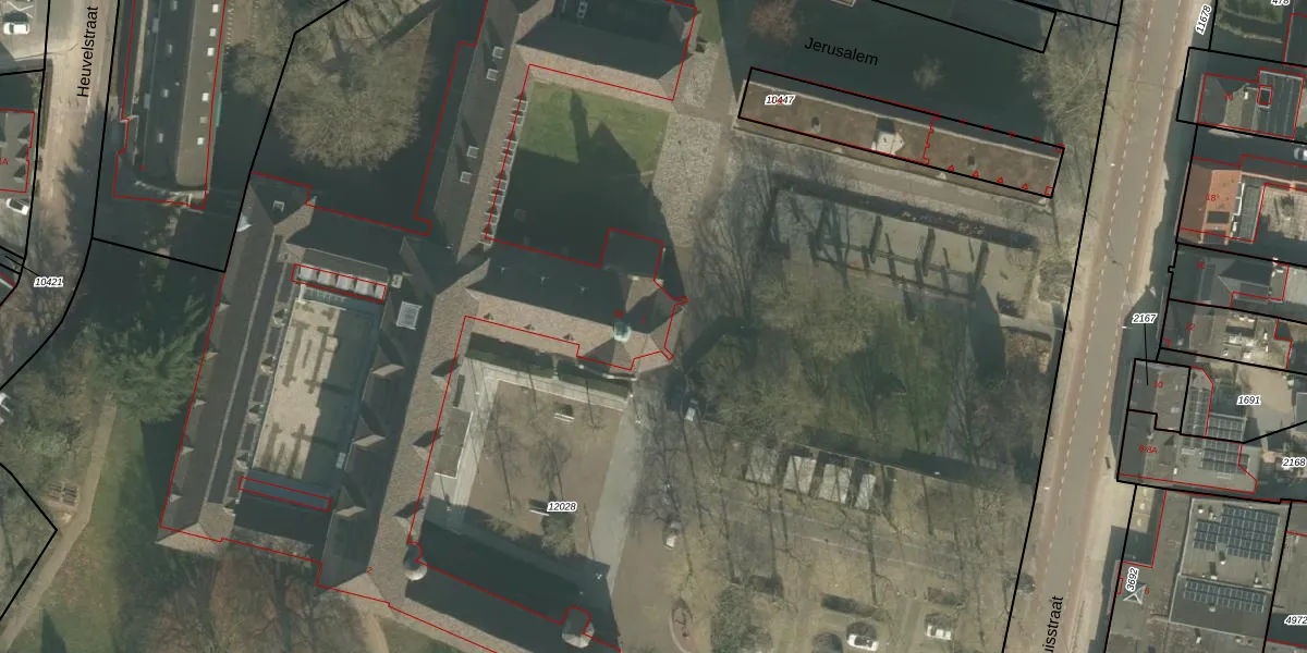 Raadhuisstraat 1 is gelegen op kadastraal perceel VRY00C12028. Deze kadastrale aanduiding is uniek en wordt gebruikt door het Kadaster om eigendomsrechten en andere zakelijke rechten vast te leggen. Het perceel maakt onderdeel uit van de kadastrale gemeente Venray.