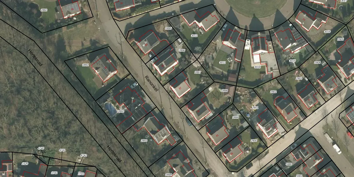 Ranonkel 37 is gelegen op kadastraal perceel VRY00T2897. Deze kadastrale aanduiding is uniek en wordt gebruikt door het Kadaster om eigendomsrechten en andere zakelijke rechten vast te leggen. Het perceel maakt onderdeel uit van de kadastrale gemeente Venray.