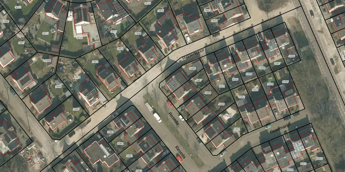 Reseda 1 is gelegen op kadastraal perceel VRY00T5986. Deze kadastrale aanduiding is uniek en wordt gebruikt door het Kadaster om eigendomsrechten en andere zakelijke rechten vast te leggen. Het perceel maakt onderdeel uit van de kadastrale gemeente Venray.