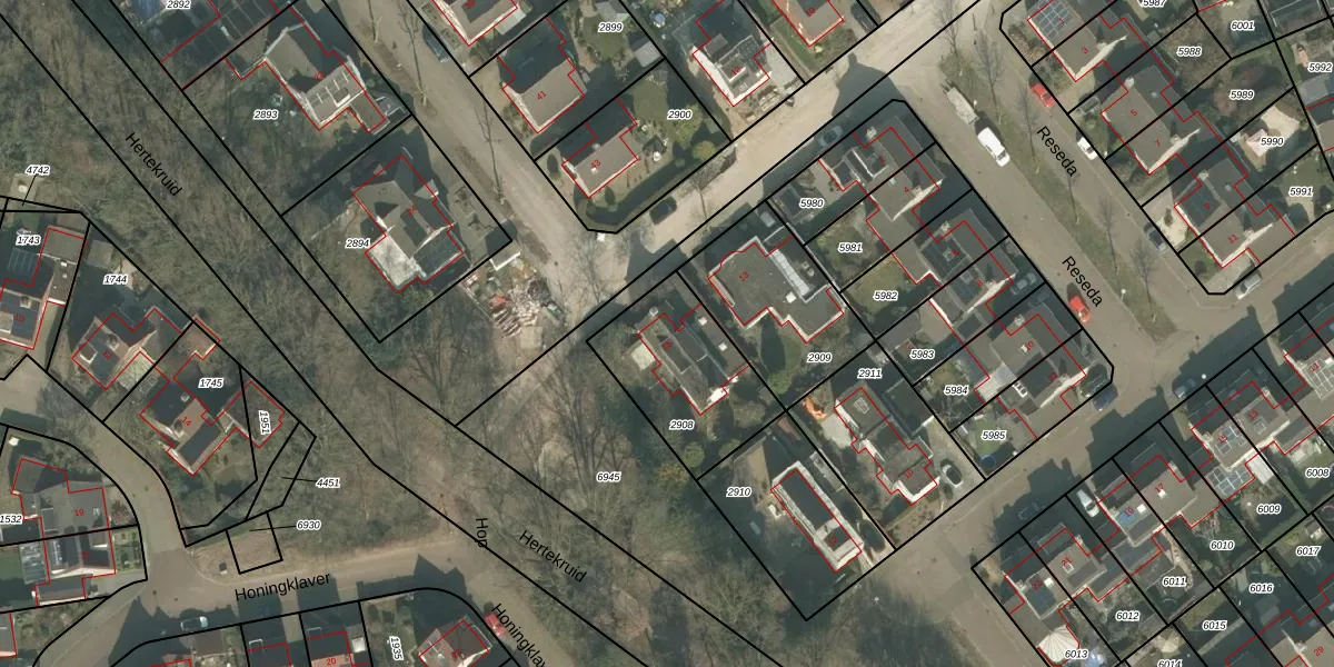 Gebruik de zoekbalk of klik op een perceel voor informatie over de adressen binnen dit perceel.