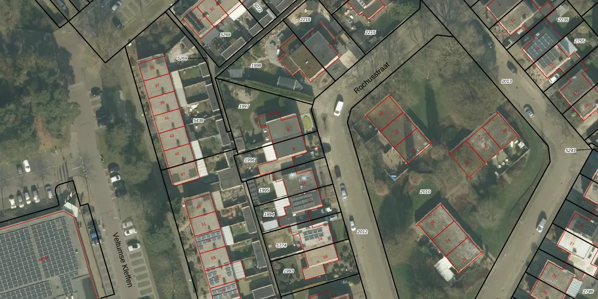 Gebruik de zoekbalk of klik op een perceel voor informatie over de adressen binnen dit perceel.