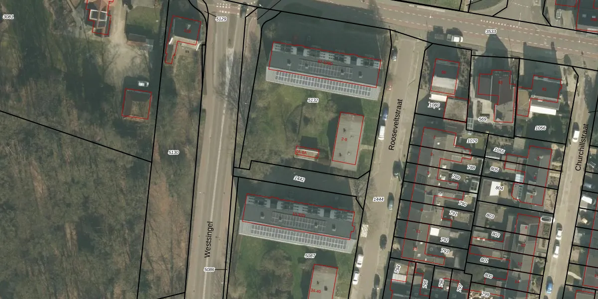 Het perceel waarop Rooseveltstraat 2-A staat heeft een oppervlakte van 2184 m². Dit is een zeer groot perceel. De perceeloppervlakte wordt geregistreerd door het Kadaster. Gedetailleerde informatie over de maten van dit perceel kunt u vinden in het rapport Kadastrale kaart met maatvoering van Rooseveltstraat 2-A.