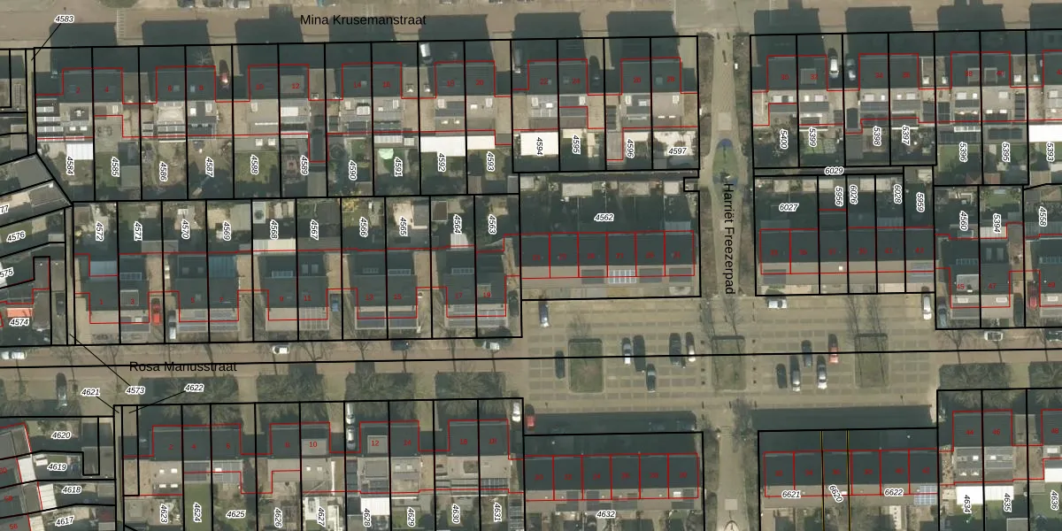 Het perceel waarop Rosa Manusstraat 21 staat heeft een oppervlakte van 801 m². Dit is een groot perceel. De perceeloppervlakte wordt geregistreerd door het Kadaster. Gedetailleerde informatie over de maten van dit perceel kunt u vinden in het rapport Kadastrale kaart met maatvoering van Rosa Manusstraat 21.