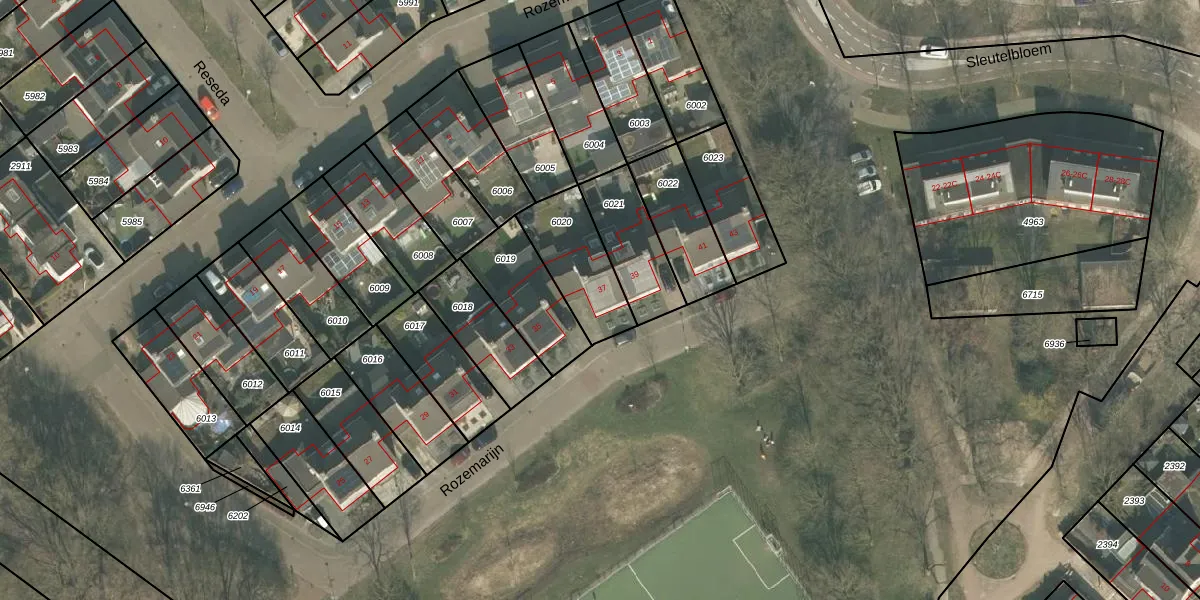 Het perceel waarop Rozemarijn 37 staat heeft een oppervlakte van 254 m². Dit is een middelgroot perceel. De perceeloppervlakte wordt geregistreerd door het Kadaster. Gedetailleerde informatie over de maten van dit perceel kunt u vinden in het rapport Kadastrale kaart met maatvoering van Rozemarijn 37.