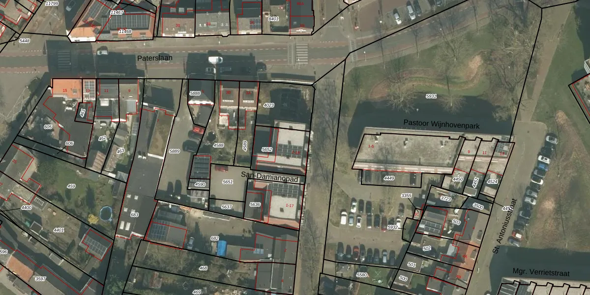 San-Damianopad 4 is gelegen op kadastraal perceel VRY00L5652. Deze kadastrale aanduiding is uniek en wordt gebruikt door het Kadaster om eigendomsrechten en andere zakelijke rechten vast te leggen. Het perceel maakt onderdeel uit van de kadastrale gemeente Venray.