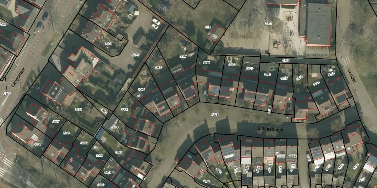 Schutsboom 15 is gelegen op kadastraal perceel VRY00L3007. Deze kadastrale aanduiding is uniek en wordt gebruikt door het Kadaster om eigendomsrechten en andere zakelijke rechten vast te leggen. Het perceel maakt onderdeel uit van de kadastrale gemeente Venray.