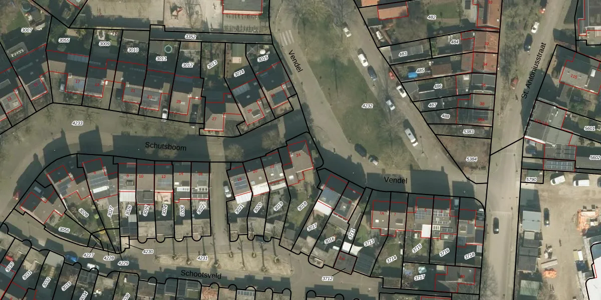 Schutsboom 24 is gelegen op kadastraal perceel VRY00L3018. Deze kadastrale aanduiding is uniek en wordt gebruikt door het Kadaster om eigendomsrechten en andere zakelijke rechten vast te leggen. Het perceel maakt onderdeel uit van de kadastrale gemeente Venray.