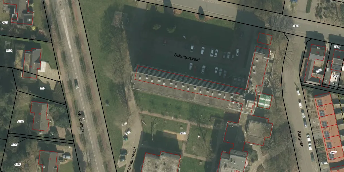 Het perceel waarop Schuttersveld 11 staat heeft een oppervlakte van 1,7 ha. Dit is een zeer groot perceel. De perceeloppervlakte wordt geregistreerd door het Kadaster. Gedetailleerde informatie over de maten van dit perceel kunt u vinden in het rapport Kadastrale kaart met maatvoering van Schuttersveld 11.