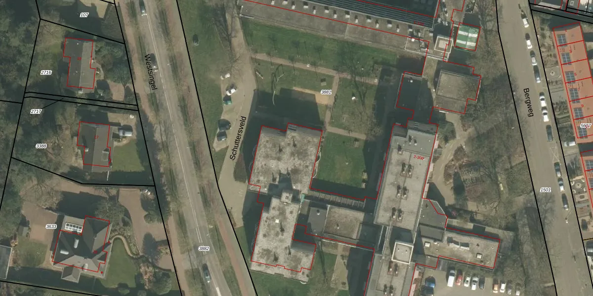Het perceel waarop Schuttersveld 110 staat heeft een oppervlakte van 1,7 ha. Dit is een zeer groot perceel. De perceeloppervlakte wordt geregistreerd door het Kadaster. Gedetailleerde informatie over de maten van dit perceel kunt u vinden in het rapport Kadastrale kaart met maatvoering van Schuttersveld 110.