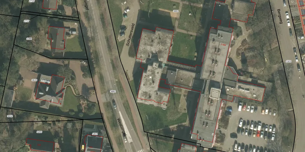 Het perceel waarop Schuttersveld 114 staat heeft een oppervlakte van 1,7 ha. Dit is een zeer groot perceel. De perceeloppervlakte wordt geregistreerd door het Kadaster. Gedetailleerde informatie over de maten van dit perceel kunt u vinden in het rapport Kadastrale kaart met maatvoering van Schuttersveld 114.