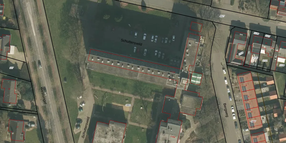 Het perceel waarop Schuttersveld 19 staat heeft een oppervlakte van 1,7 ha. Dit is een zeer groot perceel. De perceeloppervlakte wordt geregistreerd door het Kadaster. Gedetailleerde informatie over de maten van dit perceel kunt u vinden in het rapport Kadastrale kaart met maatvoering van Schuttersveld 19.