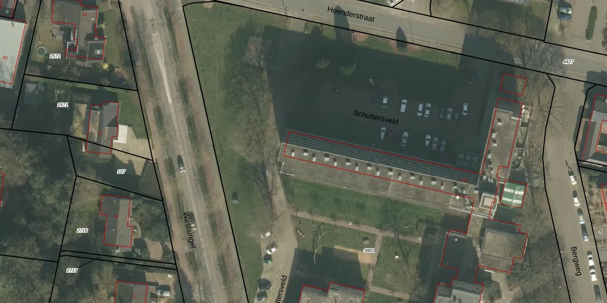 Het perceel waarop Schuttersveld 27 staat heeft een oppervlakte van 1,7 ha. Dit is een zeer groot perceel. De perceeloppervlakte wordt geregistreerd door het Kadaster. Gedetailleerde informatie over de maten van dit perceel kunt u vinden in het rapport Kadastrale kaart met maatvoering van Schuttersveld 27.