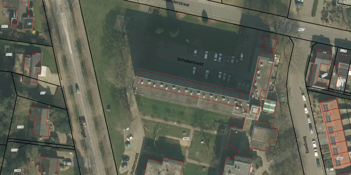 Het perceel waarop Schuttersveld 35 staat heeft een oppervlakte van 1,7 ha. Dit is een zeer groot perceel. De perceeloppervlakte wordt geregistreerd door het Kadaster. Gedetailleerde informatie over de maten van dit perceel kunt u vinden in het rapport Kadastrale kaart met maatvoering van Schuttersveld 35.