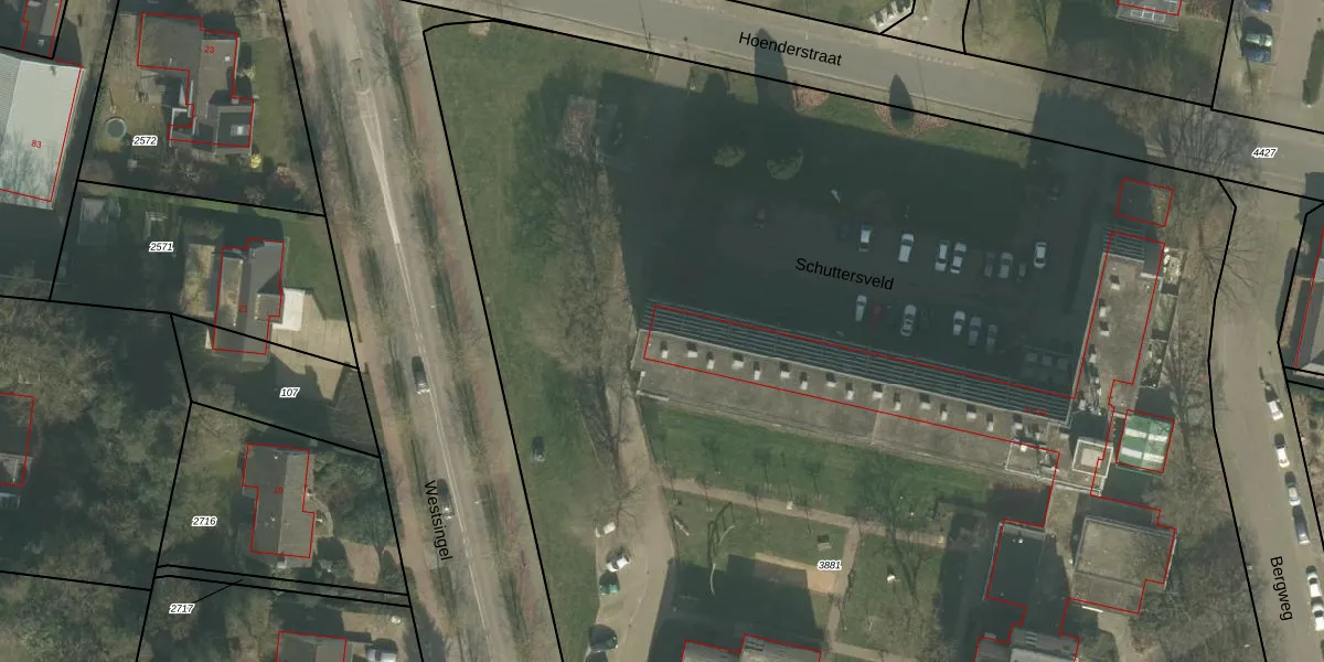 Het perceel waarop Schuttersveld 49 staat heeft een oppervlakte van 1,7 ha. Dit is een zeer groot perceel. De perceeloppervlakte wordt geregistreerd door het Kadaster. Gedetailleerde informatie over de maten van dit perceel kunt u vinden in het rapport Kadastrale kaart met maatvoering van Schuttersveld 49.