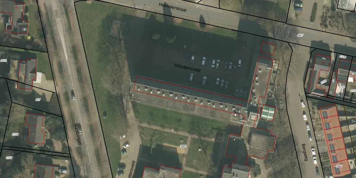 Het perceel waarop Schuttersveld 84 staat heeft een oppervlakte van 1,7 ha. Dit is een zeer groot perceel. De perceeloppervlakte wordt geregistreerd door het Kadaster. Gedetailleerde informatie over de maten van dit perceel kunt u vinden in het rapport Kadastrale kaart met maatvoering van Schuttersveld 84.