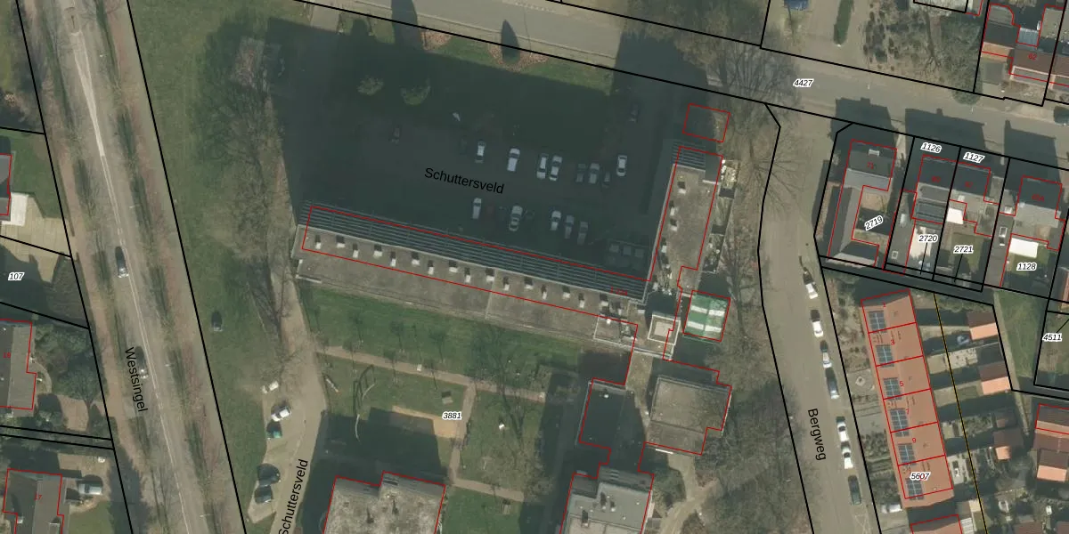Het perceel waarop Schuttersveld 93 staat heeft een oppervlakte van 1,7 ha. Dit is een zeer groot perceel. De perceeloppervlakte wordt geregistreerd door het Kadaster. Gedetailleerde informatie over de maten van dit perceel kunt u vinden in het rapport Kadastrale kaart met maatvoering van Schuttersveld 93.