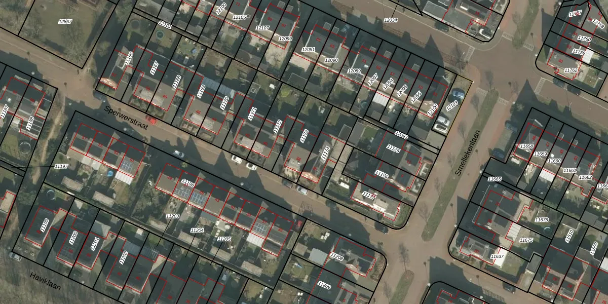 Gebruik de zoekbalk of klik op een perceel voor informatie over de adressen binnen dit perceel.