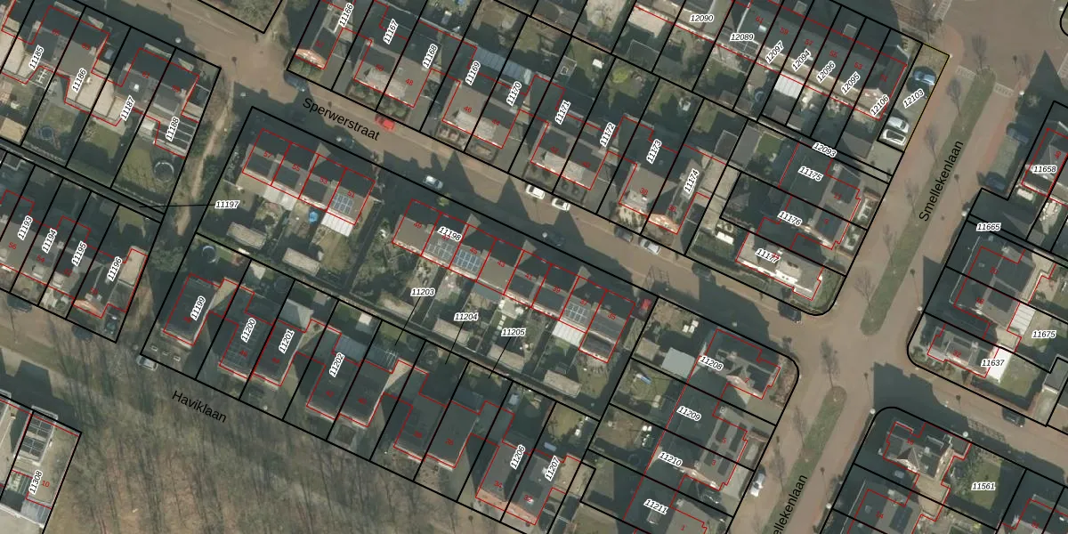 Het perceel waarop Sperwerstraat 41 staat heeft een oppervlakte van 2165 m². Dit is een zeer groot perceel. De perceeloppervlakte wordt geregistreerd door het Kadaster. Gedetailleerde informatie over de maten van dit perceel kunt u vinden in het rapport Kadastrale kaart met maatvoering van Sperwerstraat 41.