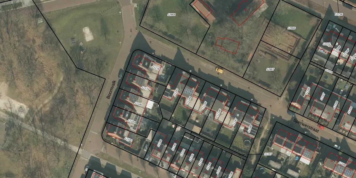 Gebruik de zoekbalk of klik op een perceel voor informatie over de adressen binnen dit perceel.