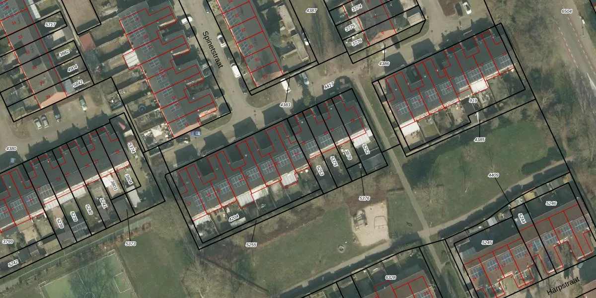 Het perceel waarop Spinetstraat 24 staat heeft een oppervlakte van 1130 m². Dit is een zeer groot perceel. De perceeloppervlakte wordt geregistreerd door het Kadaster. Gedetailleerde informatie over de maten van dit perceel kunt u vinden in het rapport Kadastrale kaart met maatvoering van Spinetstraat 24.
