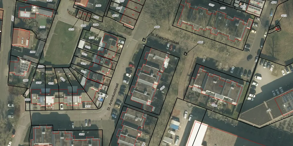 Het perceel waarop St. Antoniusstraat 27 staat heeft een oppervlakte van 1045 m². Dit is een zeer groot perceel. De perceeloppervlakte wordt geregistreerd door het Kadaster. Gedetailleerde informatie over de maten van dit perceel kunt u vinden in het rapport Kadastrale kaart met maatvoering van St. Antoniusstraat 27.
