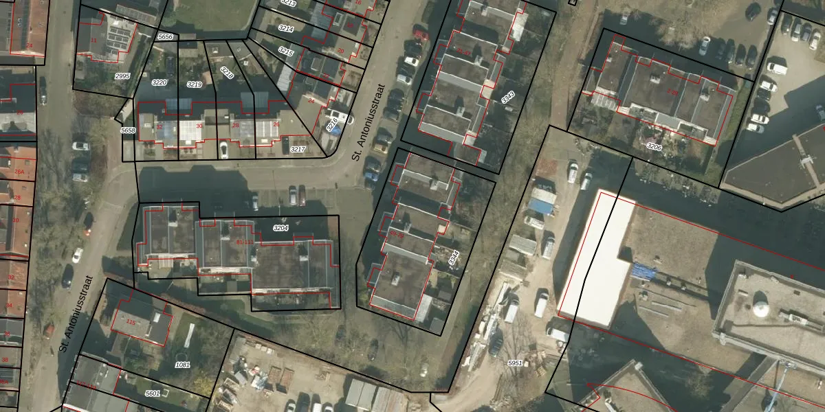 Het perceel waarop St. Antoniusstraat 53 staat heeft een oppervlakte van 975 m². Dit is een groot perceel. De perceeloppervlakte wordt geregistreerd door het Kadaster. Gedetailleerde informatie over de maten van dit perceel kunt u vinden in het rapport Kadastrale kaart met maatvoering van St. Antoniusstraat 53.