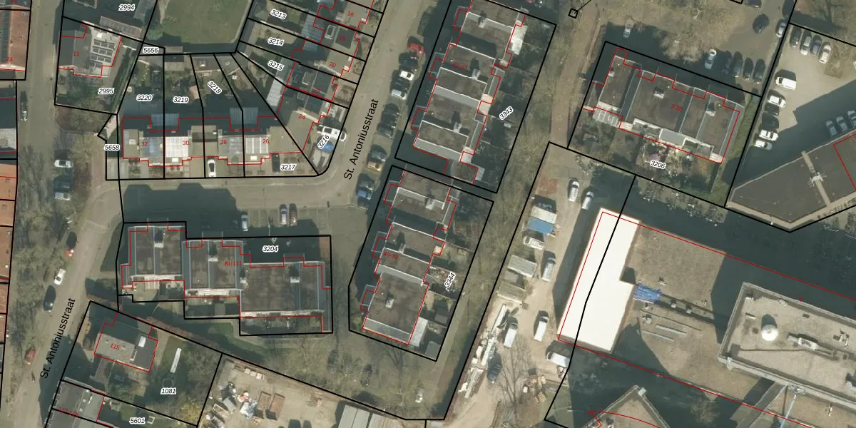 Het perceel waarop St. Antoniusstraat 67 staat heeft een oppervlakte van 975 m². Dit is een groot perceel. De perceeloppervlakte wordt geregistreerd door het Kadaster. Gedetailleerde informatie over de maten van dit perceel kunt u vinden in het rapport Kadastrale kaart met maatvoering van St. Antoniusstraat 67.