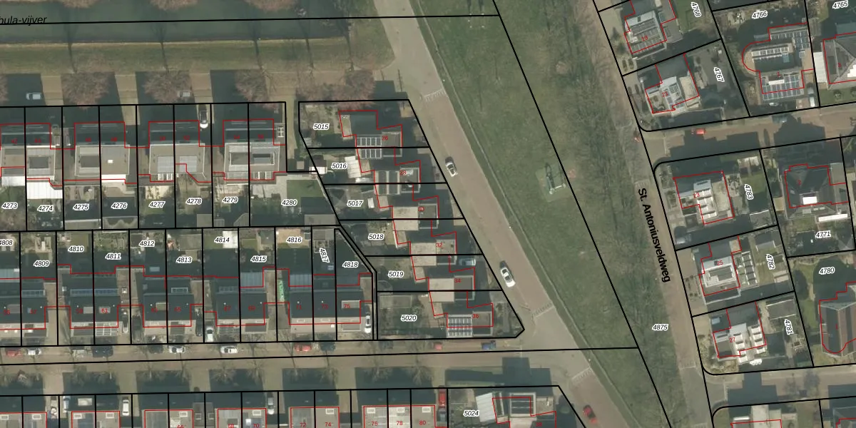 St. Antoniusveldweg 30 is gelegen op kadastraal perceel VRY00T5017. Deze kadastrale aanduiding is uniek en wordt gebruikt door het Kadaster om eigendomsrechten en andere zakelijke rechten vast te leggen. Het perceel maakt onderdeel uit van de kadastrale gemeente Venray.